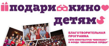 Организаторы благотворительной программы сеть кинотеатров «Киномакс» и Фонд «Обнаженные Сердца» приглашают Вас присоединиться к всероссийской благотворительной программе «Подари кино детям!», направленной на помощь детям с особенностями развития, а также детям из социально-уязвимых семей.